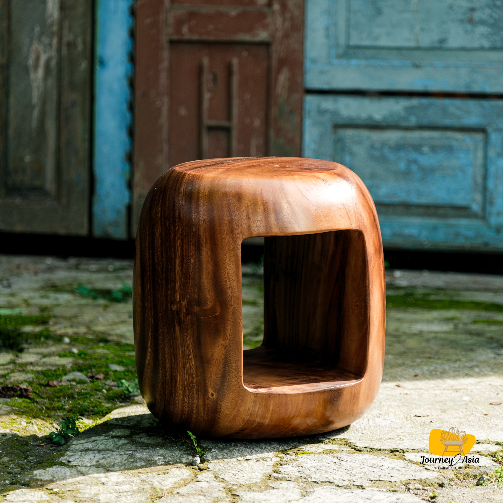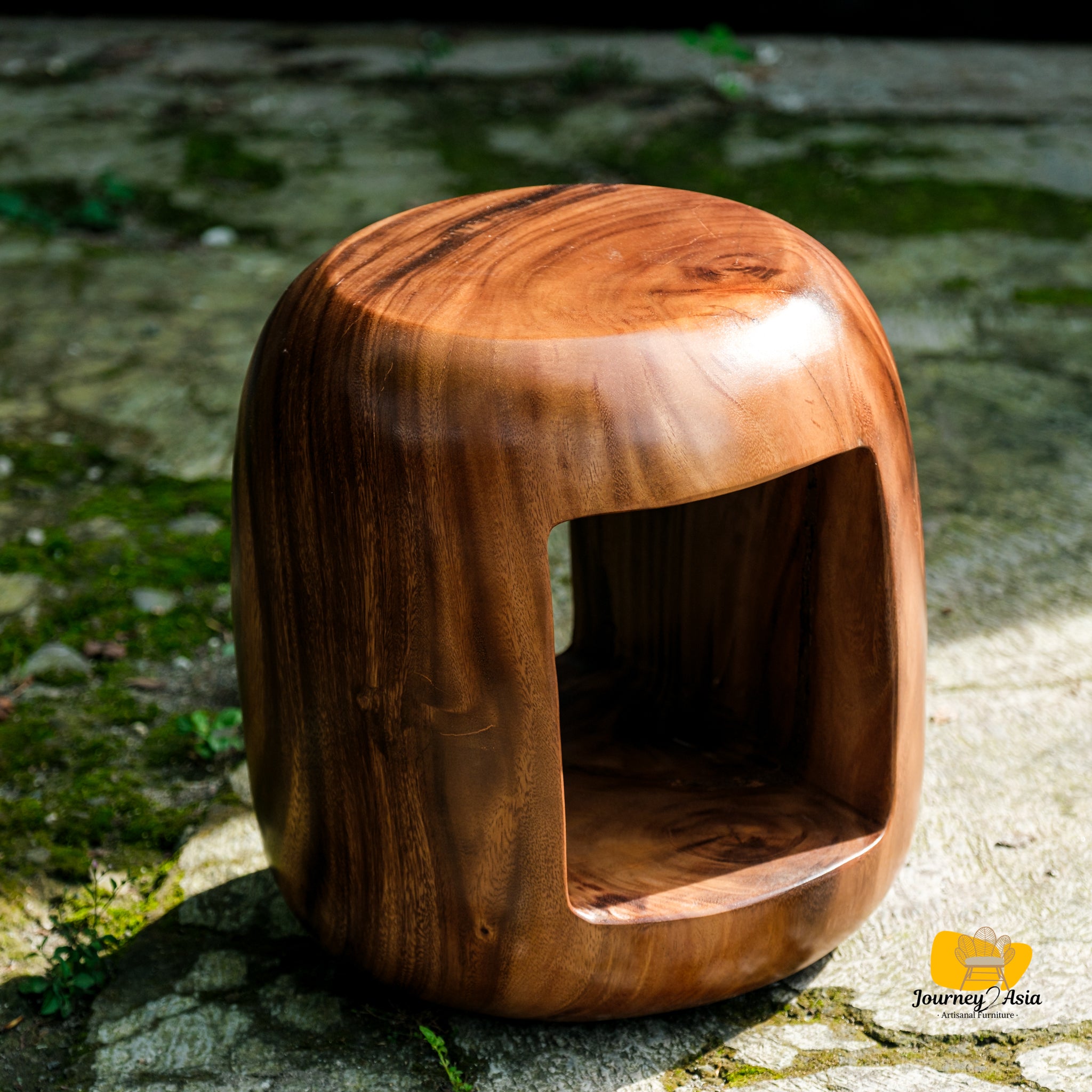 Organic, sculptural, and one-of-a-kind, the Aura Sculpted Side Table celebrates the raw beauty of nature through flowing form and rich wood grain. Hand-carved from a solid block of suar wood, this statement piece features a hollowed, sculptural silhouette that feels both modern and elemental.