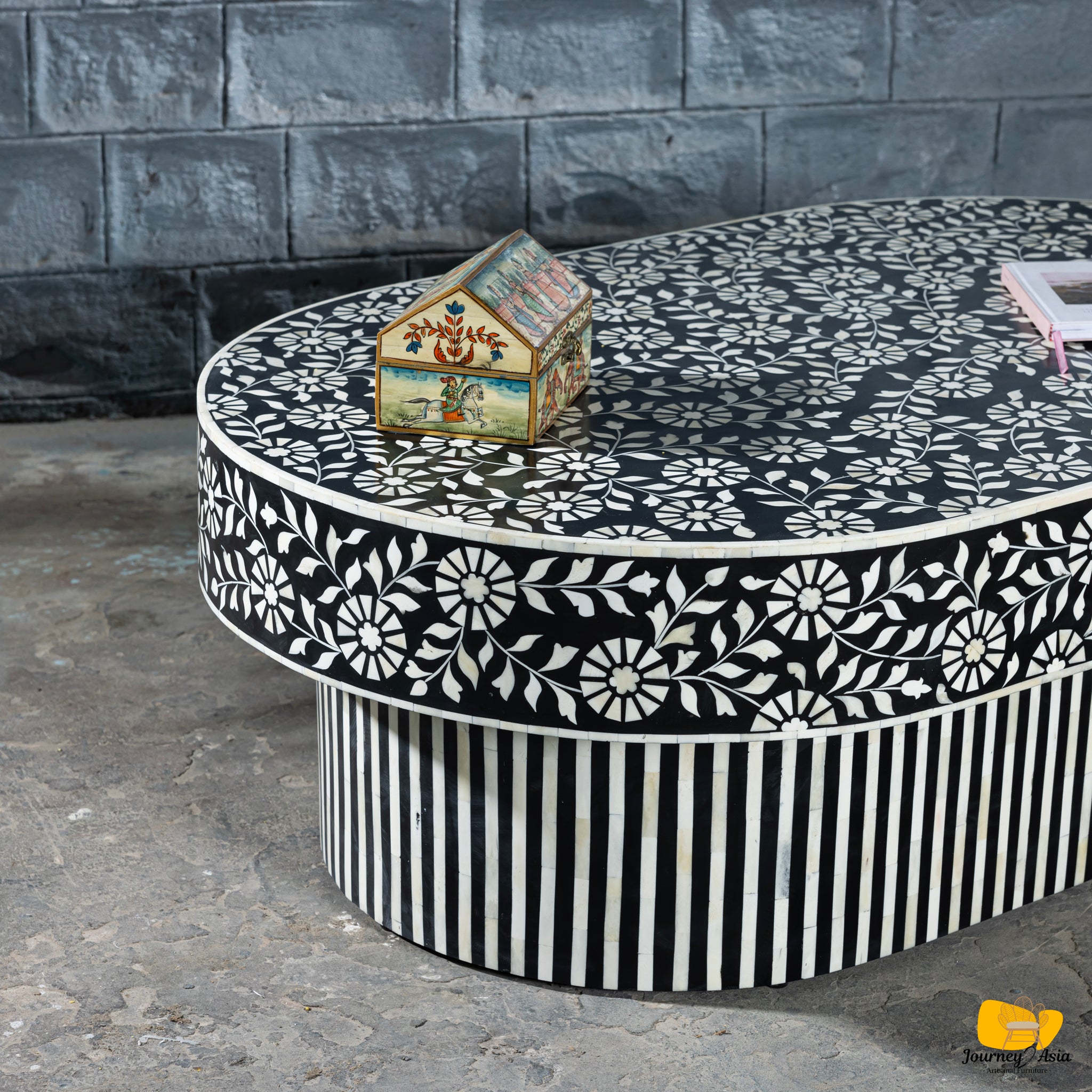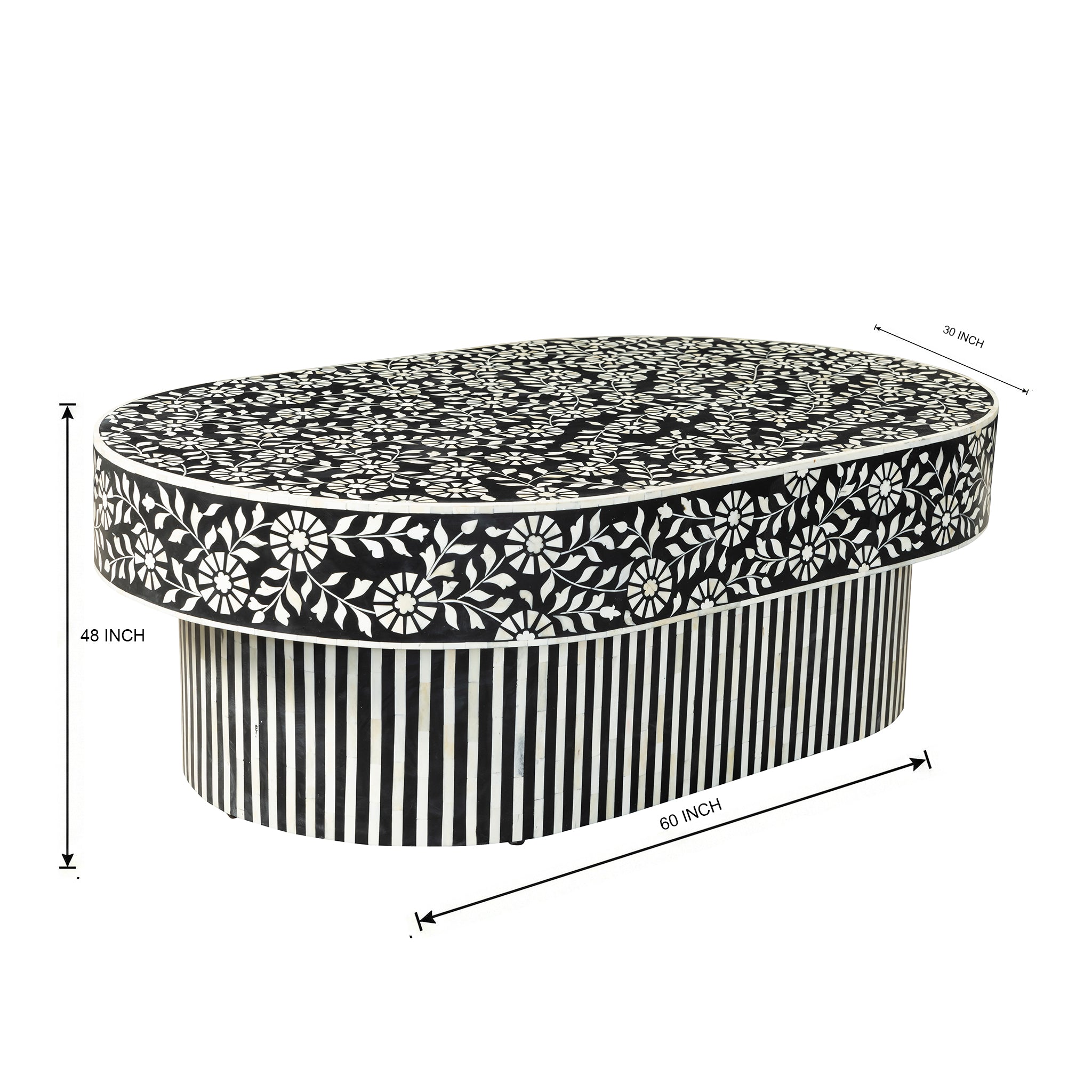 Make a refined design statement with this stunning Bone Inlay Oval Coffee Table, combining timeless floral artistry with bold contemporary contrast.