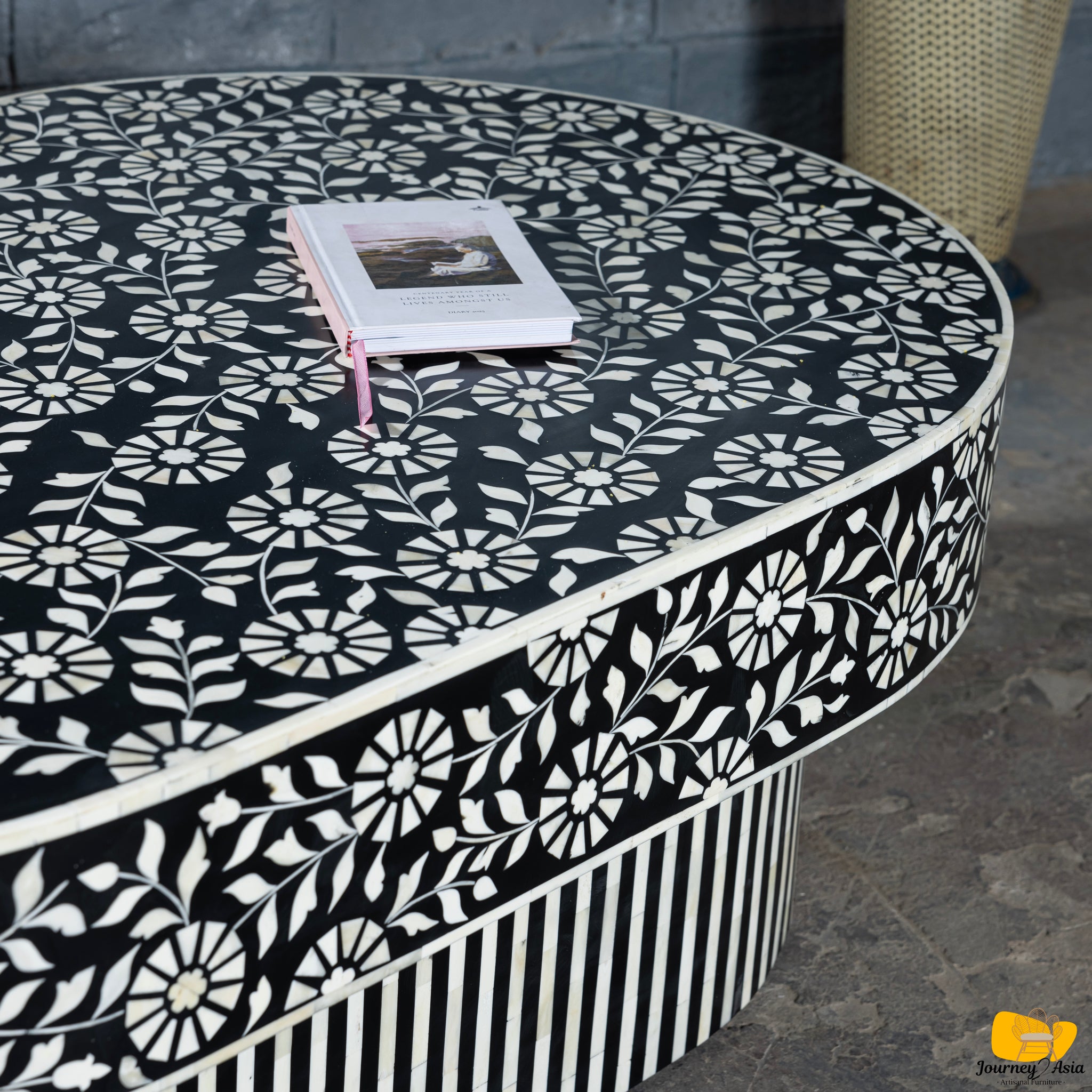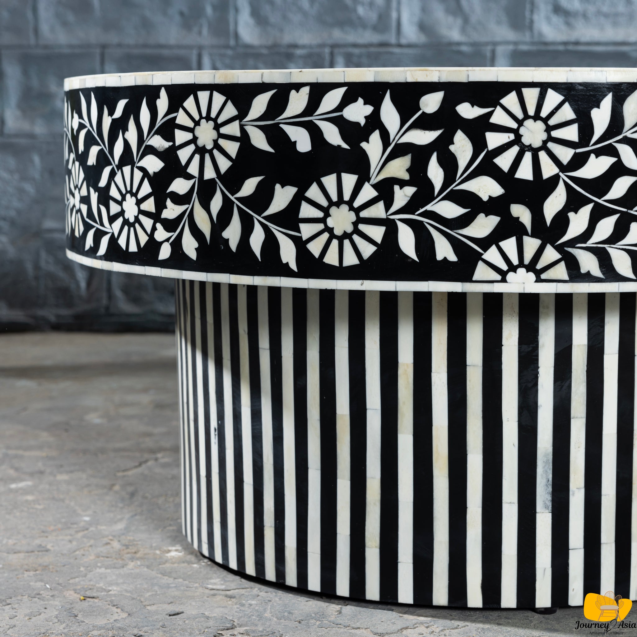 | Pattern / Color | Floral Motif on Top & Sides with Vertical Black/Ivory Striped Pedestal |