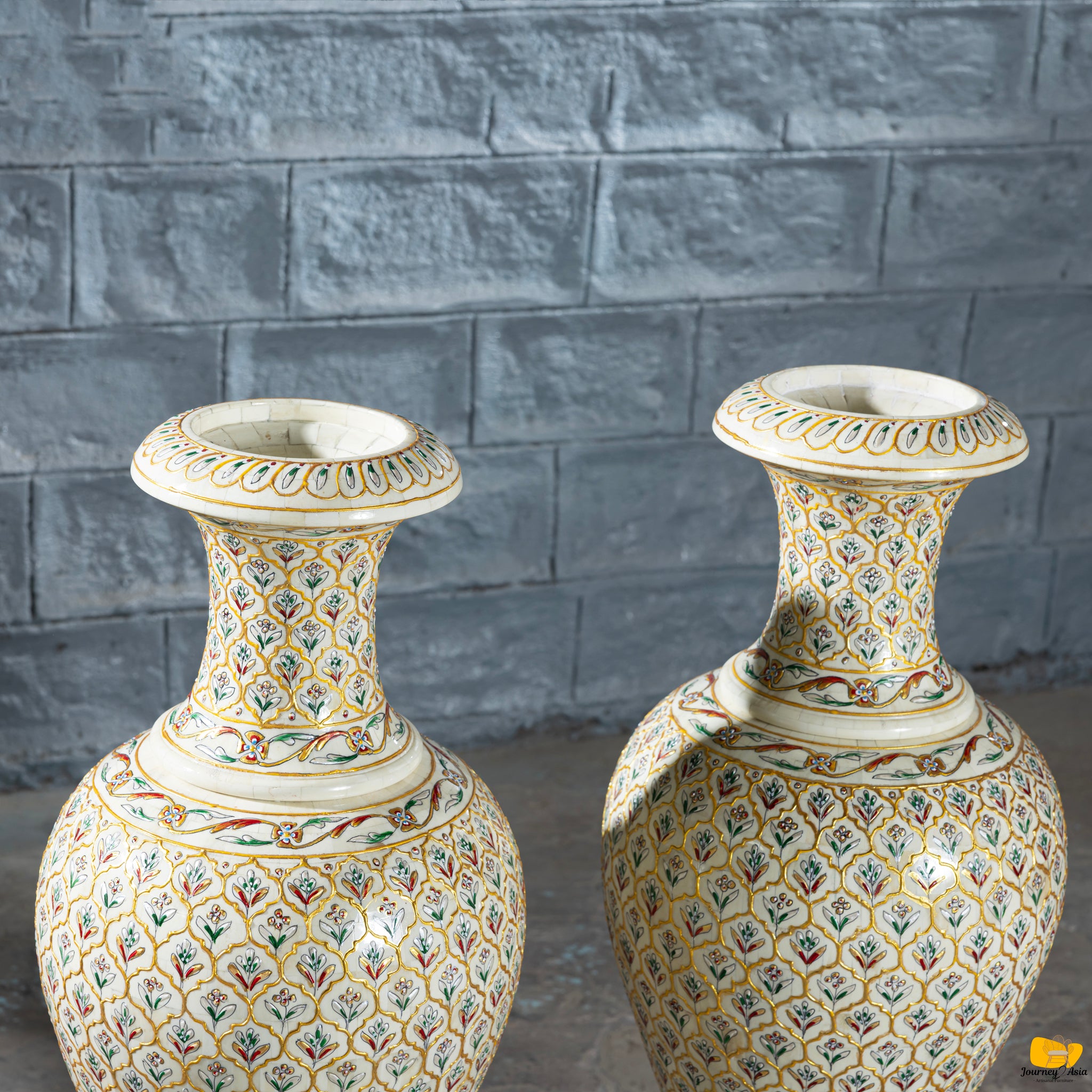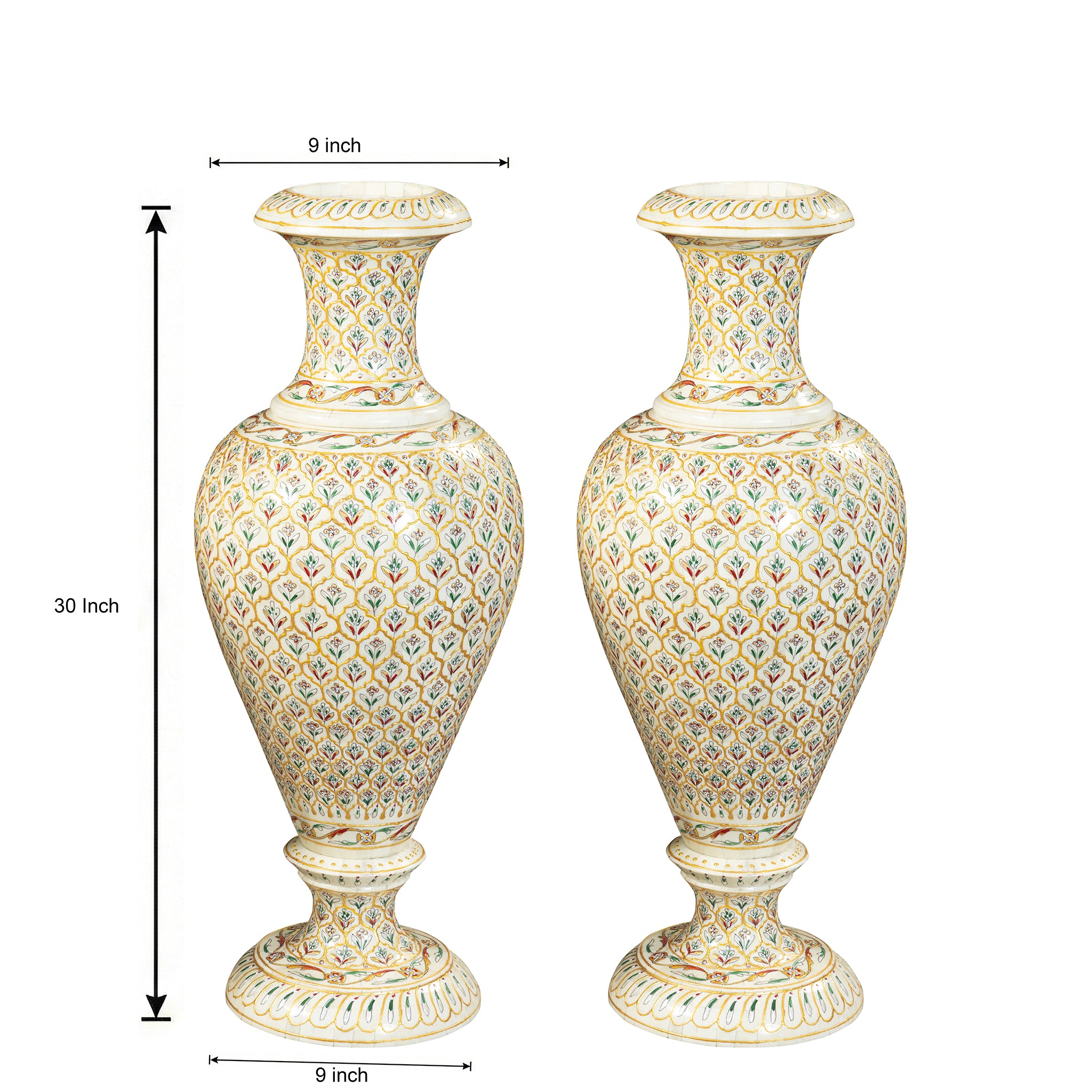 This vase features a warm golden-yellow palette adorned with tiny multicolored floral motifs, each individually hand-painted - turning the entire piece into a continuous tapestry of intricate artwork. Perfect as a statement décor accent in entryways, living rooms, boutique spaces, hotels, or luxury design projects, it offers both cultural depth and visual sophistication.