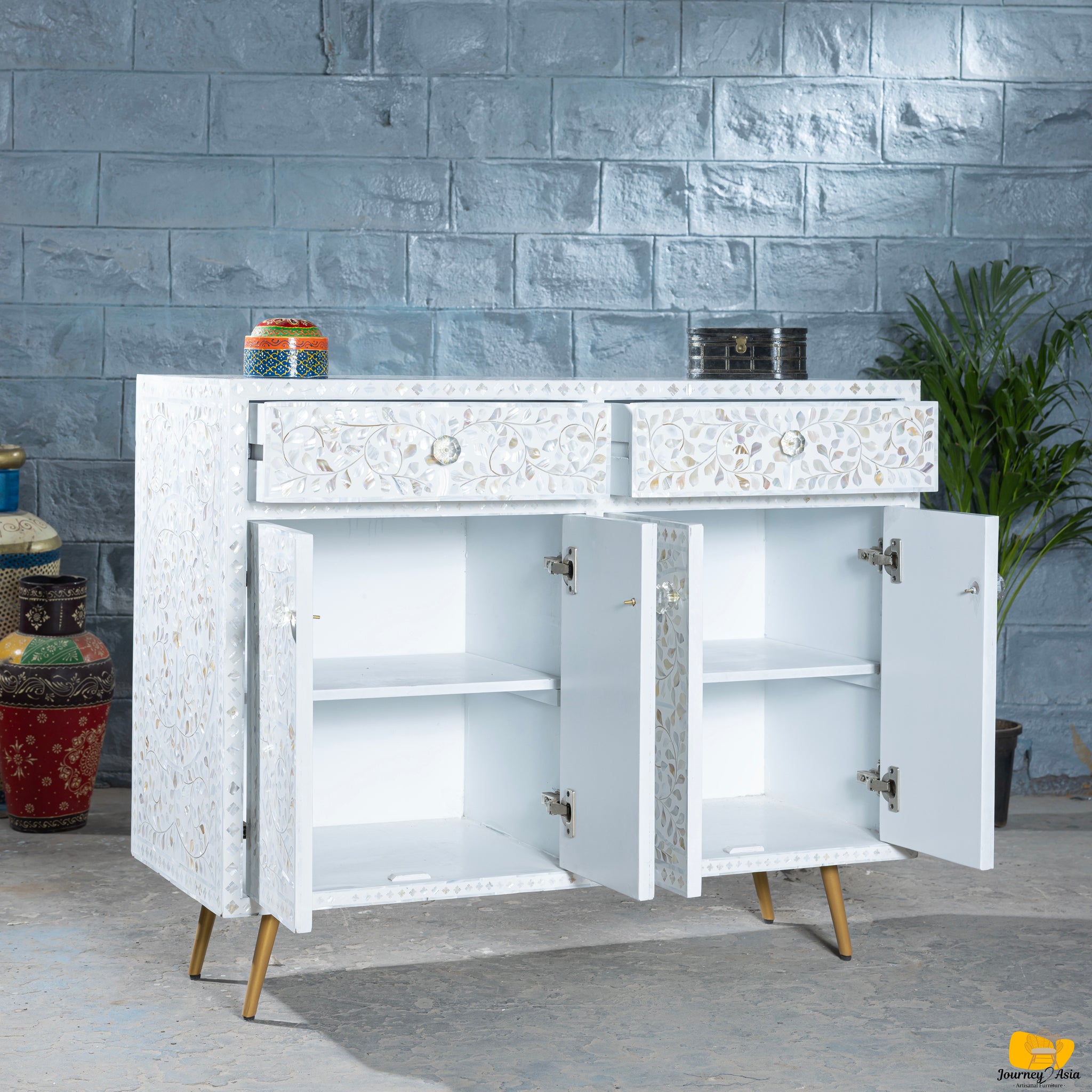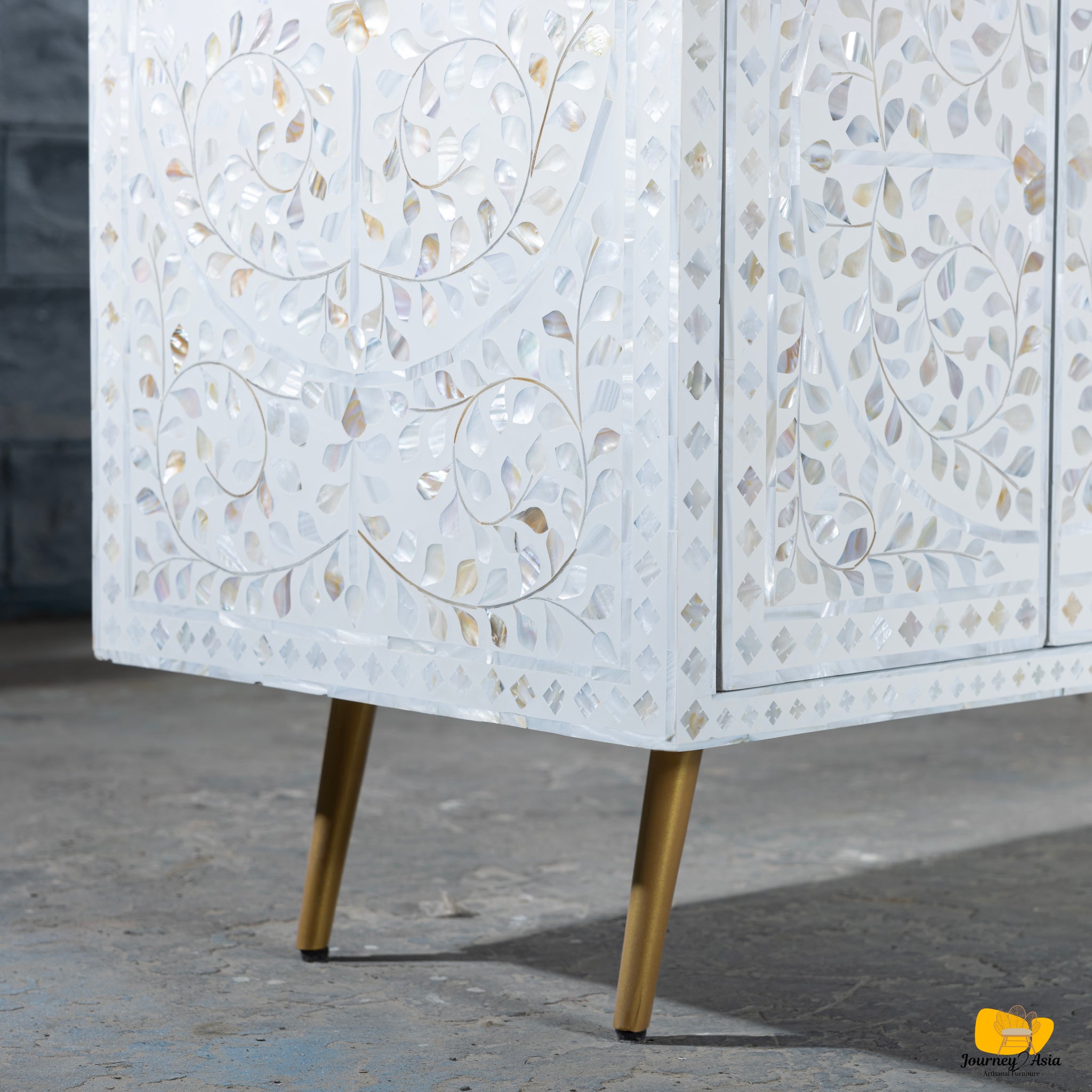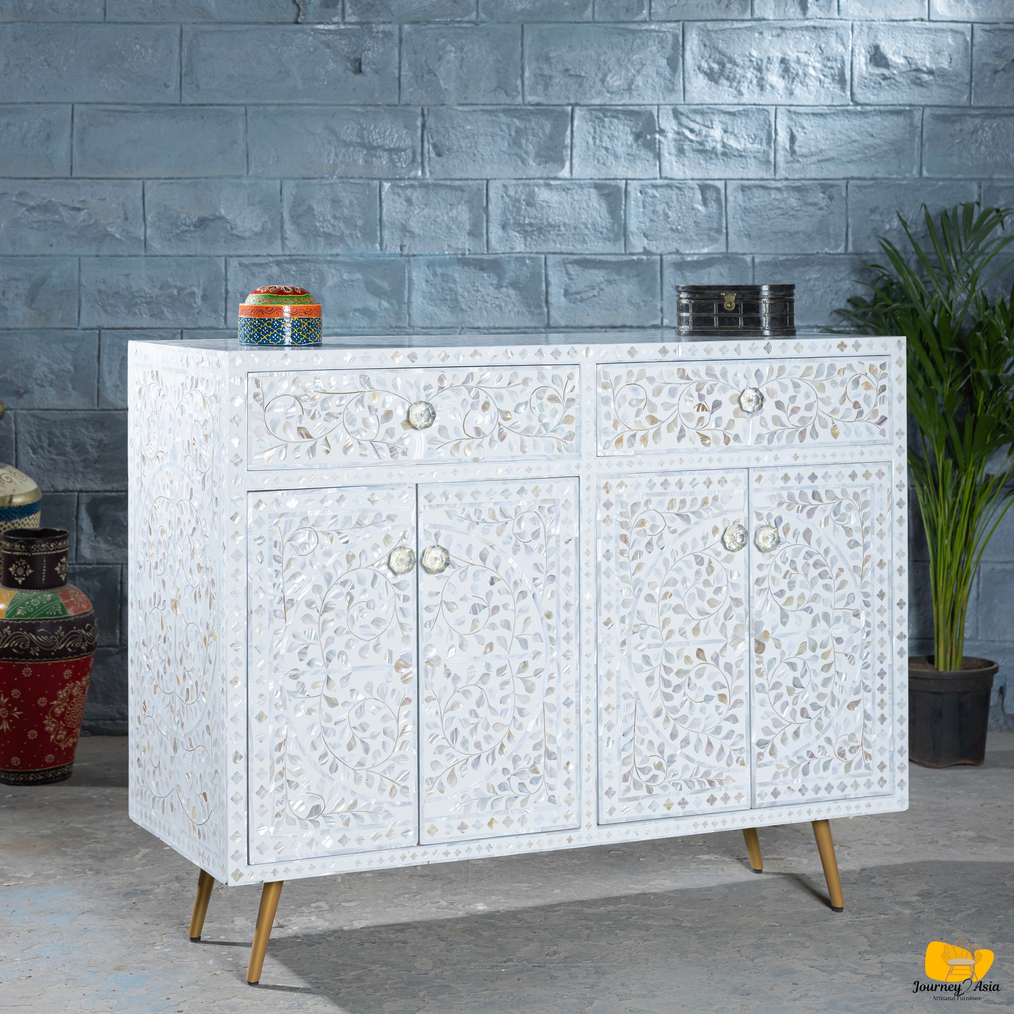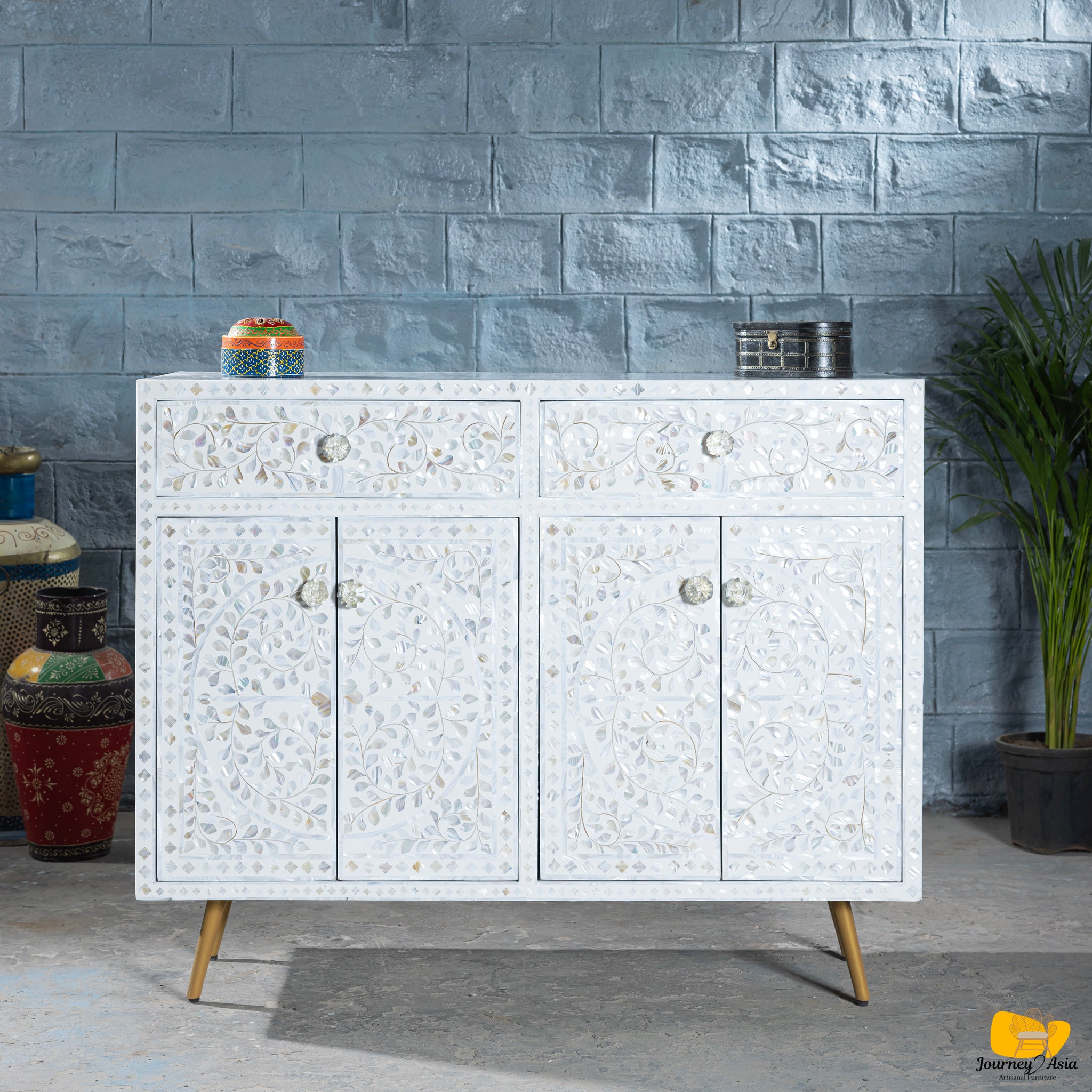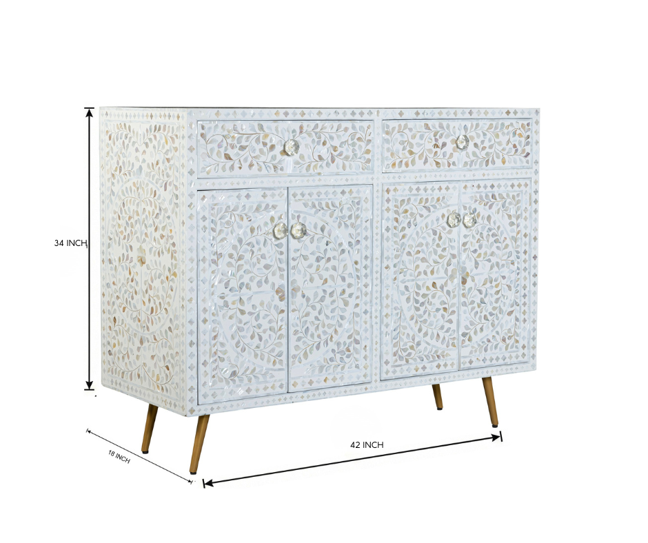 Bring refined luxury and artisanal beauty into your home with this exquisite Mother-of-Pearl (MOP) Console Table. Every shimmering MOP piece is individually cut and placed by skilled artisans, creating a luminous mosaic that elevates any room with elegance and subtle glamour.