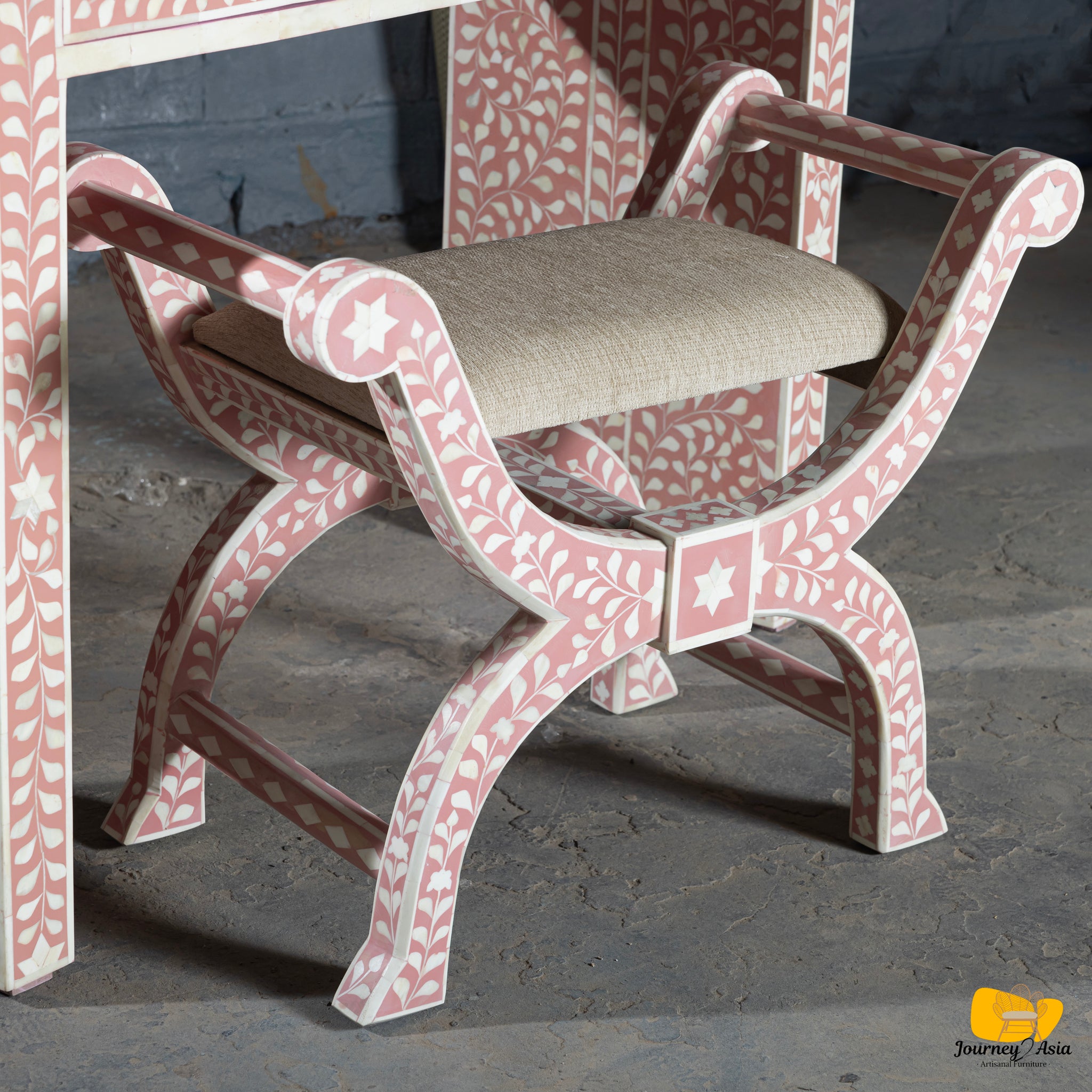 | Material | Bone Inlay + Resin + Wood + Fabric Cushion (Stool) |