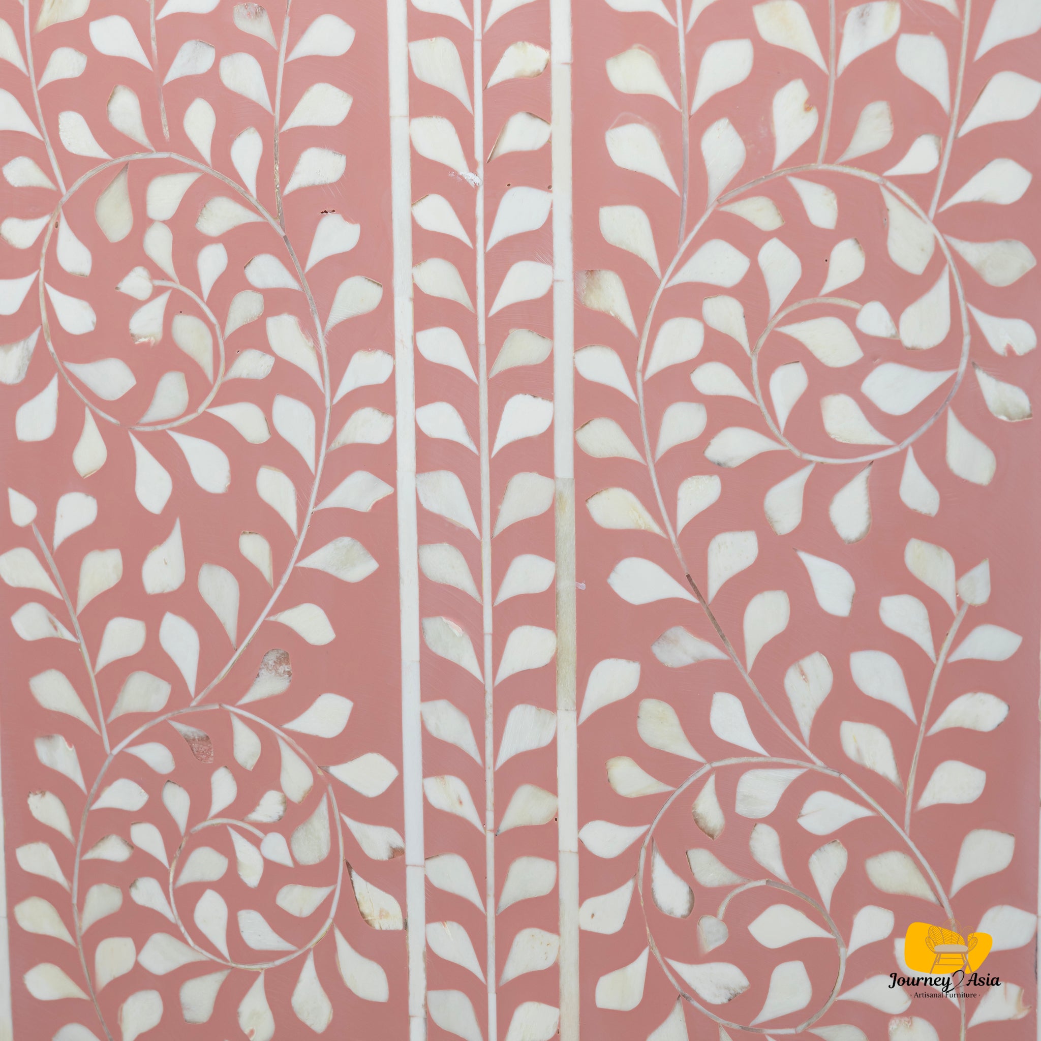 - Stunning hand-inlaid floral bone pattern in soft pink & ivory
