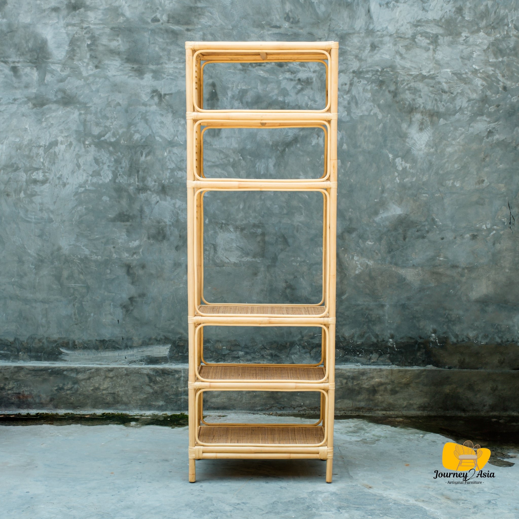 The open-frame design keeps the piece visually light while offering generous vertical storage for books, décor, plants, or collectibles. Its natural finish highlights the beauty of woven rattan, adding depth and character without overwhelming the room. Ideal for living rooms, home offices, bedrooms, or styled retail spaces, this bookshelf is as versatile as it is elegant.