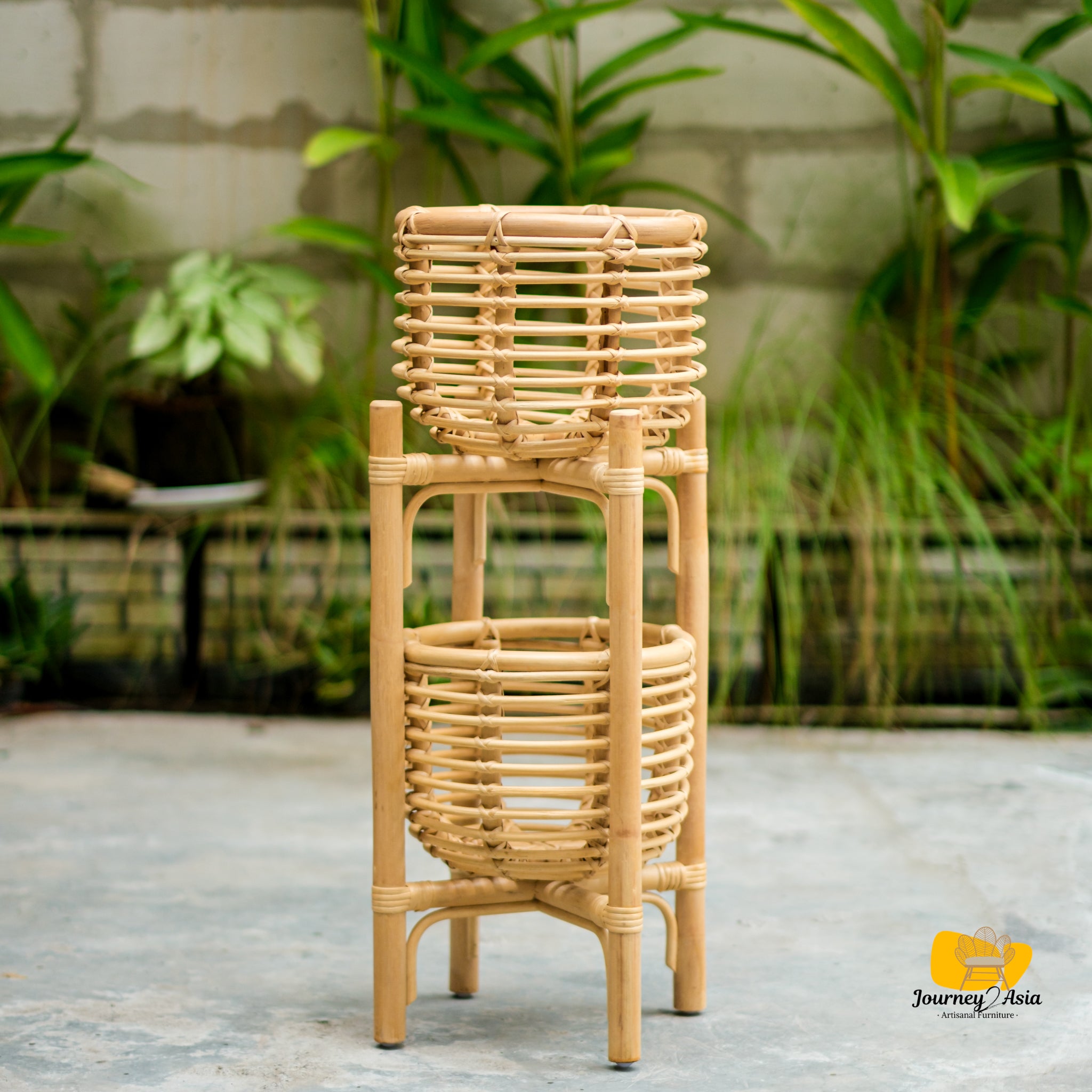 Bring natural warmth and organic texture into your space with the Taman Double Planter Stand, a beautifully crafted pairing designed to elevate your indoor greenery. Handwoven from natural rattan, this set has a double pot stand, allowing plants to breathe, grow, and visually stand out.